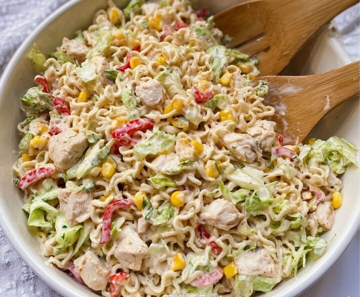 🥗 Salat mit Ramen-Nudeln, Hähnchen & Gemüse – der bunte Familienhit aus der Schüssel