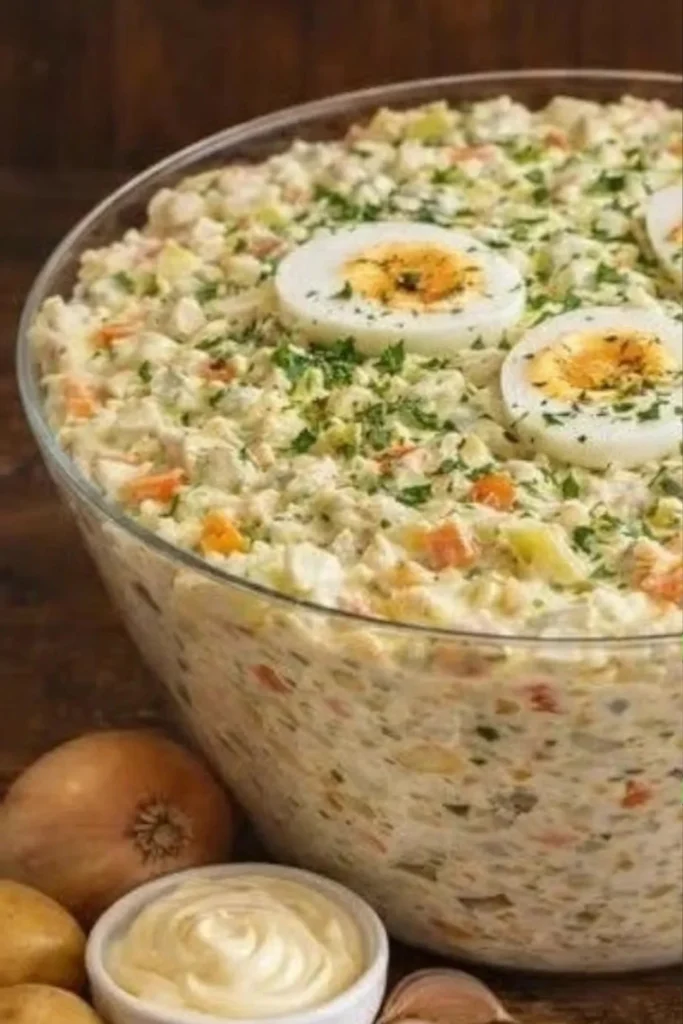 Denkt man an Familienfeiern, kommen Erinnerungen an fröhliche Zusammenkünfte auf. Oft wird der Salat dann zum Highlight auf dem Buffet, neben gegrilltem Fleisch und köstlichen Beilagen. Die frischen Farben und die knackigen Zutaten machen einfach gute Laune. Außerdem ist der 7 Tassen Salat ein echtes Wohlfühlessen: cremig durch die Mayonnaise, herzhaft dank der Fleischwurst und knackig durch Gurken und Zwiebeln. Wenn Sie ihn zubereiten, wird Ihr Zuhause von einem einladenden Duft erfüllt, der große Vorfreude auf das Essen weckt.