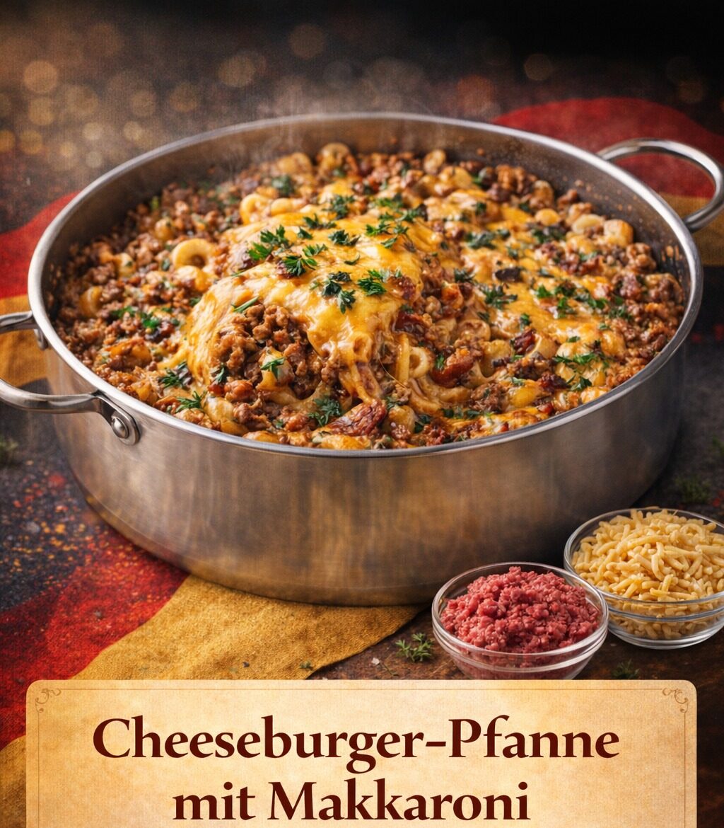 Die Cheeseburger-Pfanne mit Makkaroni vereint zwei absolute Lieblingsgerichte in einem: saftigen Cheeseburger und cremige Nudelpfanne. Das Ergebnis ist ein würziges, sättigendes Gericht, das besonders bei Familien und Fans herzhafter Küche sehr beliebt ist. Mit Hackfleisch, geschmolzenem Käse und einer cremigen Tomatensauce entsteht eine Kombination, die schnell zubereitet ist und garantiert Eindruck macht. Was dieses Rezept so besonders macht, ist die harmonische Verbindung aus kräftig gewürztem Rinderhackfleisch, aromatischer Tomatensauce und einer samtigen Sahnebasis. Die Makkaroni nehmen die Sauce perfekt auf, während der geschmolzene Käse für die typische Cheeseburger-Note sorgt. Das Gericht ist unkompliziert, alltagstauglich und ideal, wenn es schnell gehen soll. Ein weiterer Vorteil dieser Nudelpfanne liegt in ihrer Vielseitigkeit. Sie lässt sich problemlos vorbereiten, aufwärmen und sogar variieren – je nach Geschmack und verfügbaren Zutaten. Perfekt für ein gemütliches Abendessen oder als sättigende Mahlzeit nach einem langen Tag.