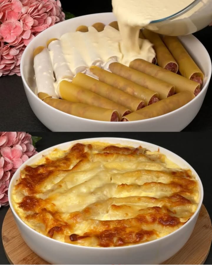 Cannelloni gehören zu den beliebtesten Ofengerichten der italienischen Küche – gefüllt, cremig und herrlich sättigend. Diese Version mit würziger Hackfleischfüllung, einer samtigen Sahnesoße und geschmolzenem Mozzarella ist ein echtes Wohlfühlgericht, das sowohl im Alltag als auch zu besonderen Anlässen begeistert.Die Kombination aus zartem Rinderhack, aromatischen Gewürzen und einer besonders cremigen Soße sorgt dafür, dass die Cannelloni im Ofen butterweich werden und gleichzeitig eine goldbraune Kruste entwickeln. Dieses Rezept gelingt garantiert und ist ideal für Familienessen, Wochenendgerichte oder wenn Gäste kommen.Dank der einfachen Zubereitung braucht man weder Vorkochen noch komplizierte Schritte: Die ungekochten Cannelloni werden direkt gefüllt und garen im Ofen in der cremigen Soße perfekt durch. Ein Gericht, das nach italienischem Genuss riecht – und genauso schmeckt! 🇮🇹🍝