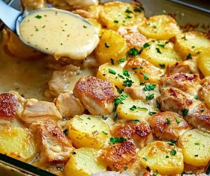 Manche Gerichte fühlen sich an wie eine warme Umarmung – dieses Hähnchen-Kartoffel-Gratin gehört definitiv dazu. Wenn zart gebratenes Hähnchen auf feine Kartoffelscheiben trifft und alles in einer würzigen Schmandsoße im Ofen goldgelb überbacken wird, entsteht echte Wohlfühlküche. Perfekt für stressige Wochentage, gemütliche Familienabende oder wenn man einfach Lust auf etwas Herzhaftes hat, das alle glücklich macht. Das Schöne an diesem Auflauf: Er ist schnell vorbereitet, braucht keine komplizierten Zutaten und lässt sich wunderbar abwandeln. Ein Klassiker, der immer geht – und nach dem ersten Bissen garantiert auf die Lieblingsliste wandert. 💛