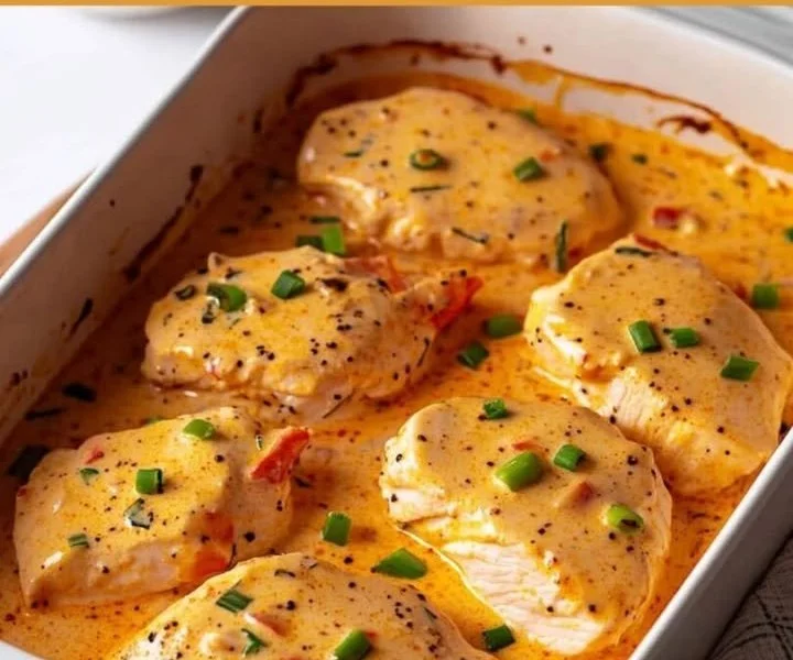 Wie man Hähnchenbrust in cremiger Frischkäse-Soße mit Gemüse lagert
