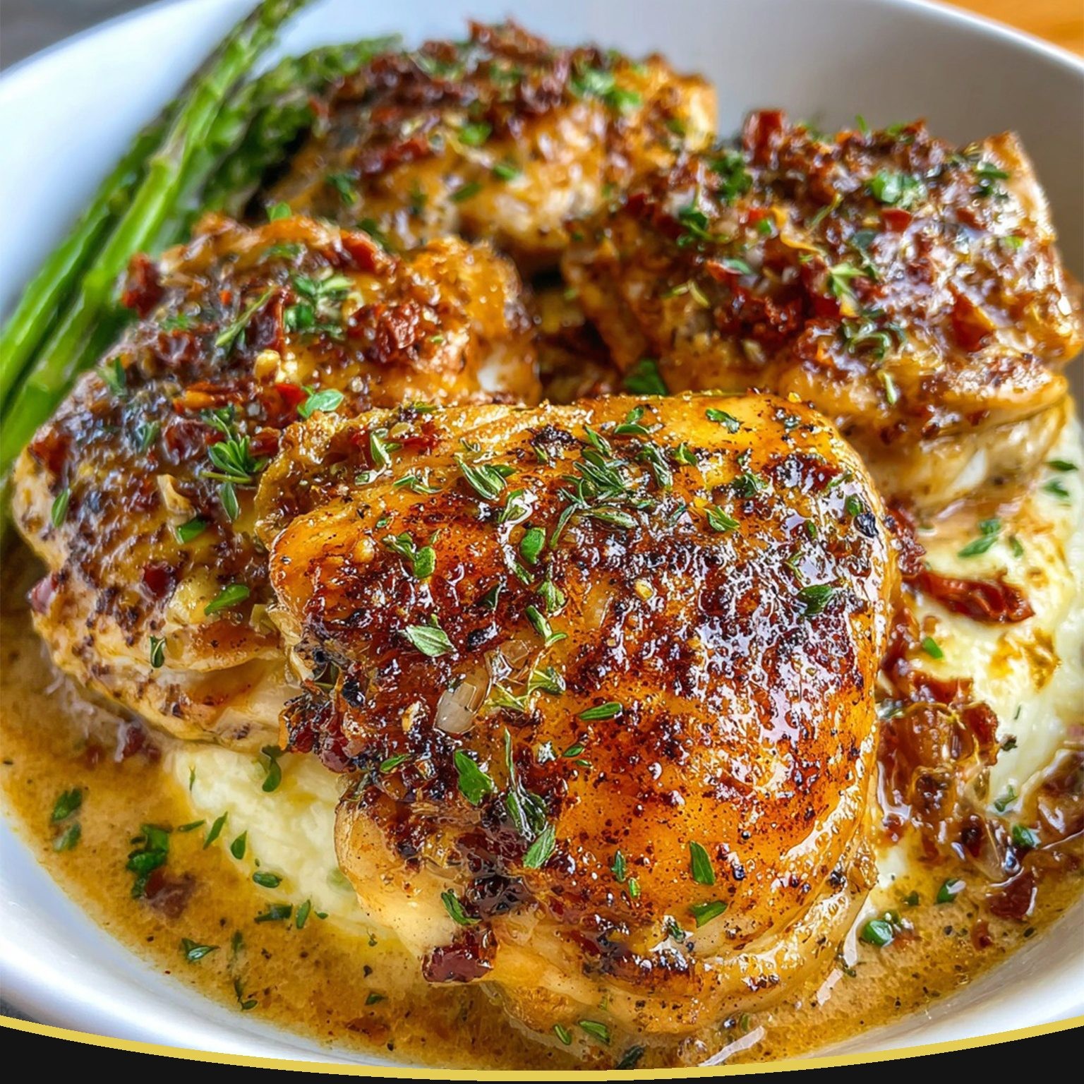 Suchst du nach einem romantischen, cremigen und herzhaften Abendessen? Diese Marry Me Chicken Thighs sind saftig, goldbraun und überzogen mit einer cremigen Sauce aus getrockneten Tomaten und Parmesan, die jeden am Tisch nach einer zweiten Portion verlangen lässt! Ideal für ein gemütliches Abendessen zu Hause oder um Familie und Freunde zu beeindrucken. Dieses Gericht kombiniert saftige Hähnchenschenkel mit Knochen und Haut mit einer reichen, käsigen und leicht würzigen Sauce – Comfort Food pur, das bei jedem Bissen ein Gefühl von Nostalgie und Zufriedenheit schenkt. Serviere es mit Kartoffelpüree, Reis oder geröstetem Gemüse für das ultimative Dinner-Erlebnis.
