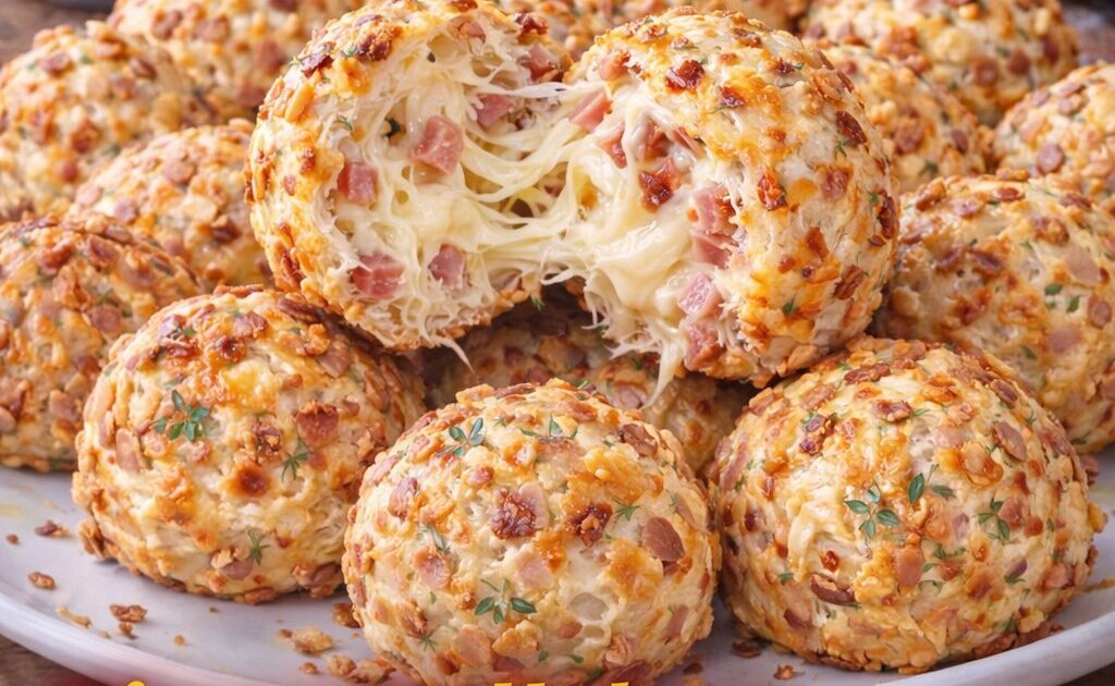 Röstzwiebeln, Schinken und Käse sorgen für ein intensives Aroma. Besonders der geschmolzene Käse macht die Bällchen so saftig und lecker.