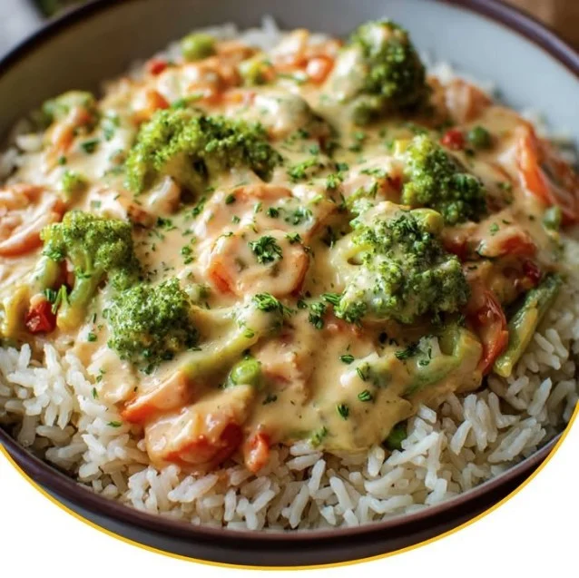 Die Schale dampfenden Reis, umgeben von buntem Gemüse und einem cremigen Frischkäse-Dressing – diese Kombination weckt sofort Erinnerungen an gemütliche Familienessen und entspannte Abende mit Freunden. Reis mit Gemüse-Frischkäse-Sauce ist nicht nur eine Freude für den Gaumen, sondern auch ein liebevolles Gericht, das schnell zubereitet ist und Platz für Kreativität lässt. Jedes Mal, wenn wir in die bunte Mischung aus knackigem Brokkoli, süßen Erbsen und saftigen Karotten eintauchen, können wir uns in eine Welt voller Wärme und behaglicher Erinnerungen begeben. Ob als schnelles Mittagessen an einem hektischen Wochentag oder als echter Genuss bei einer geselligen Runde – dieses Rezept bringt den Geschmack der Heimat auf den Tisch und ist ein wahrer Genuss für Groß und Klein.