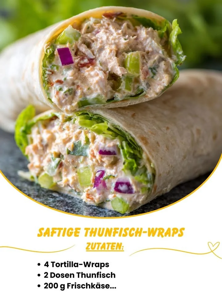 Saftige Thunfisch-Wraps sind eine schnelle und einfache Mahlzeit, die perfekt für jedes Frühstück, Mittagessen oder sogar ein leichtes Abendessen geeignet ist. Sie sind nicht nur lecker, sondern auch gesund und nahrhaft. Mit frischen Zutaten und wenig Aufwand sind sie ideal für beschäftigte Tage oder als Snack für die ganze Familie.
