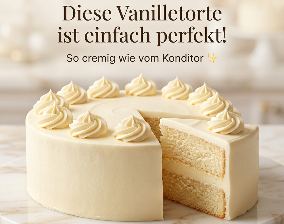 Die Vanilletorte mit Buttercreme gehört zu den beliebtesten Klassikern der Backkunst. Mit ihrem luftigen Biskuit und der samtigen Creme ist sie perfekt für Geburtstage, Feiern oder einfach für einen besonderen Moment.