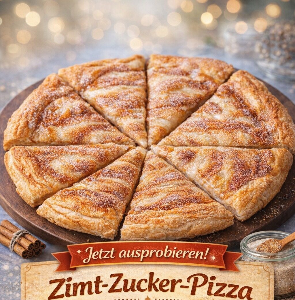Die Zimt-Zucker-Pizza ist ein einfacher, aber unglaublich aromatischer Ofensnack für alle, die Zimt lieben. Mit fertigem Croissant-Teig gelingt dieses süße Rezept besonders schnell und eignet sich perfekt für spontane Backideen. Schon während des Backens erfüllt der Duft von geschmolzener Butter, Zucker und Zimt die ganze Küche – ein echtes Wohlfühlaroma. Was dieses Rezept so beliebt macht, ist die Kombination aus knusprigem Teig und karamellisierter Zimt-Zucker-Schicht. Außen leicht goldbraun und innen weich, entsteht eine süße Versuchung, die sich ideal als Dessert, Nachmittags-Snack oder süßes Frühstück eignet. Durch die einfache Zubereitung ist die Zimt-Zucker-Pizza auch für Backanfänger bestens geeignet. Ein weiterer Vorteil liegt in der Vielseitigkeit: Das Grundrezept lässt sich nach Geschmack verfeinern – ob mit Glasur, Nüssen oder einer leichten Vanillesauce. Mit nur wenigen Zutaten entsteht ein duftendes Highlight aus dem Ofen.